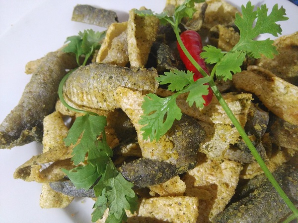 1. Da cá sấy giòn lắc trứng muối