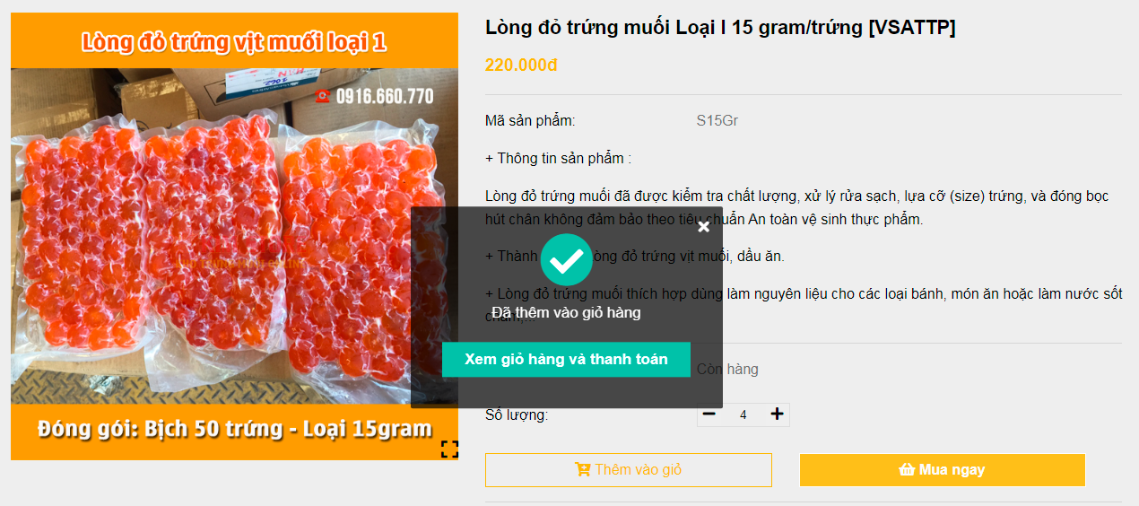 - Bước 4: Click vào nút Xem giỏ hàng và Thanh toán để đặt mua sản phẩm.
