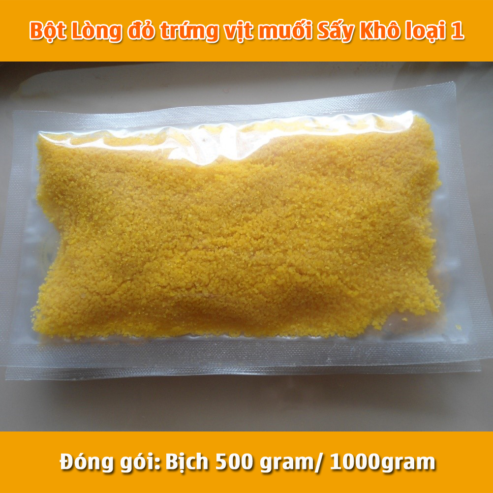+ Bột lòng đỏ trứng vịt muối khô: với độ ẩm <5%, đã chín 80%, khô ráo, thơm ngon, rắc trực tiếp lên thực phẩm nóng là dùng.